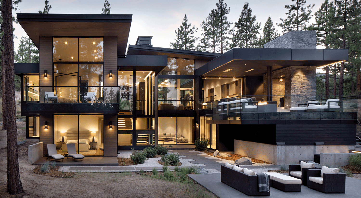 Customized floor-to-ceiling glass windows, skinny sight lines, and multi-slide doors that erase the boundary between the living spaces and the scenic surroundings.